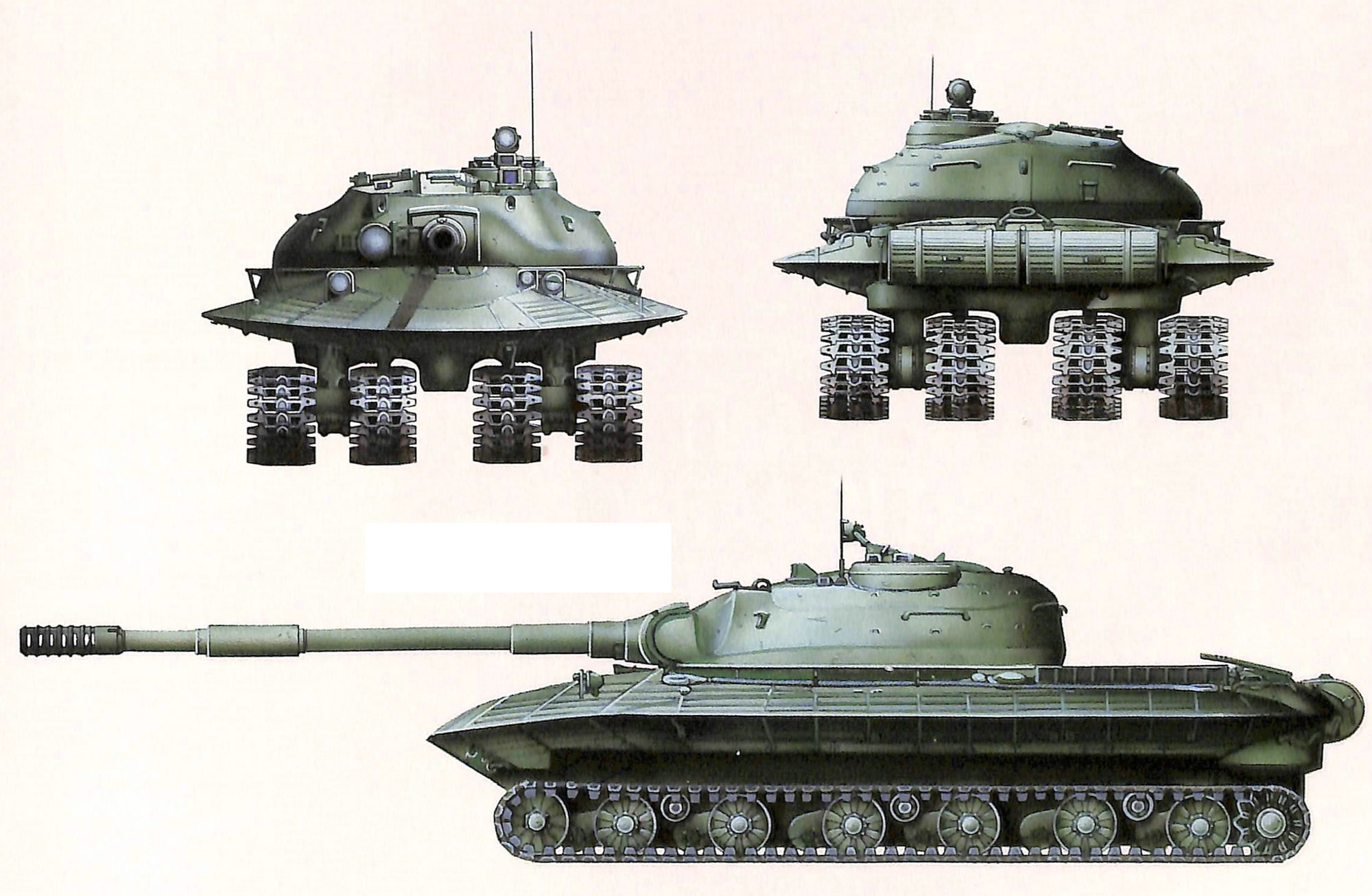 Завершает список больших танков. Эта модель была разработана в 1957 г. в СССР Л.С.Трояновым, загадочный «Объект 279» собрали только в экспериментальном экземпляре, отличительной особенностью являлся плоский корпус (в виде летающей тарелки), масса танка достигала более 60 тонн. Длина корпуса — 9,8 м, шириной — 3,6 м, высотой — 2,5 м, имеющий гидравлическую подвеску и широкие двойные гусеницы, что повышало проходимость «Объекта 279» за счет снижения нагрузки на поверхность.