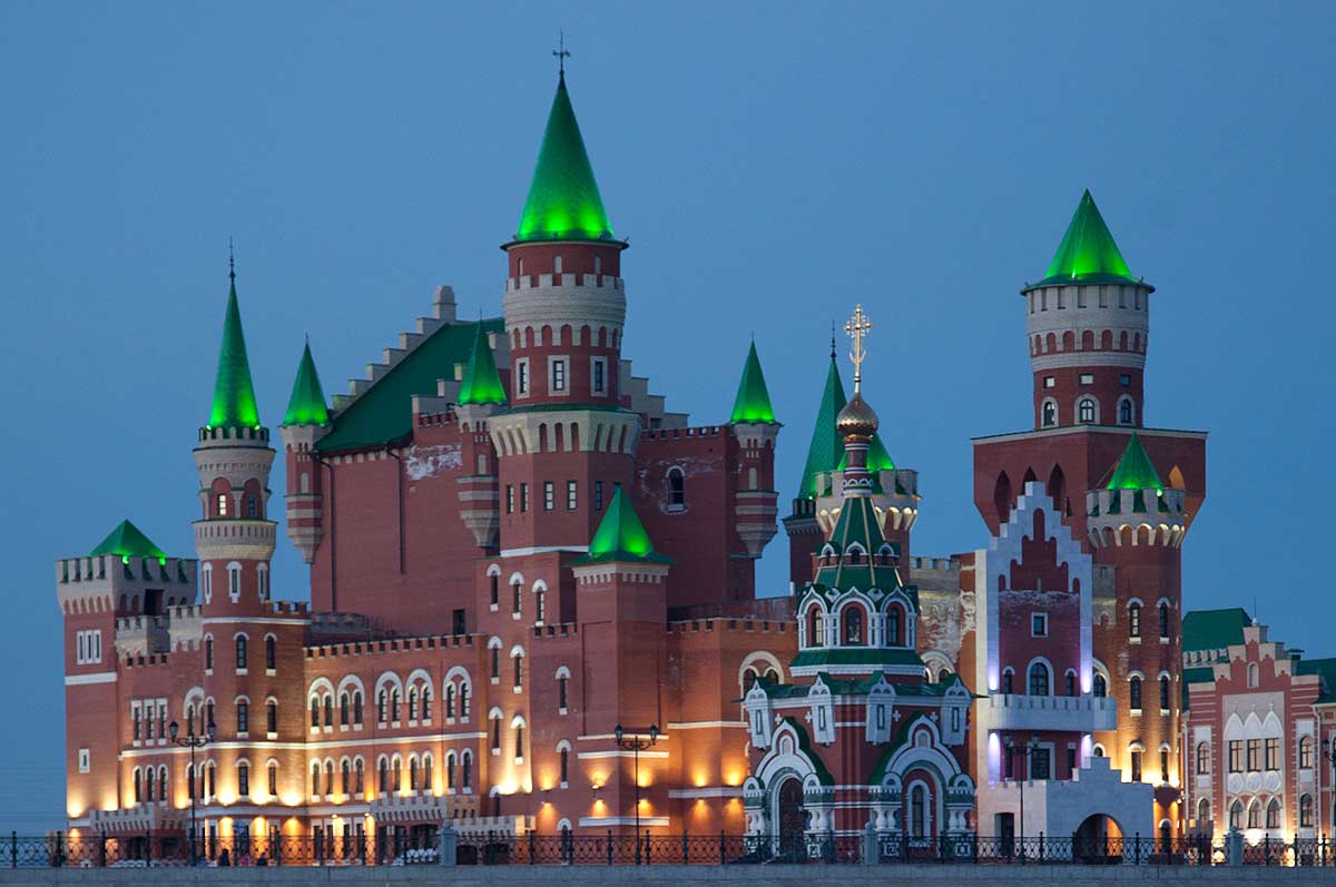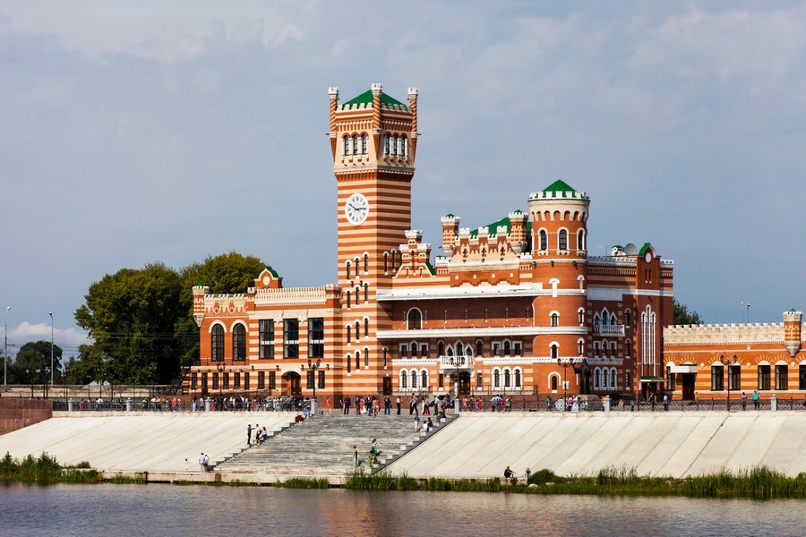Дворцы бракосочетаний обычно в описание достопримечательностей не входят – направление другое, но Йошкар-Ола явилась исключением из правил. Здание, выстроенное в виде бельгийского городка, действительно напоминает дворец. Красно-белое, украшенное резной лепниной, оно представляет готический архитектурный стиль.