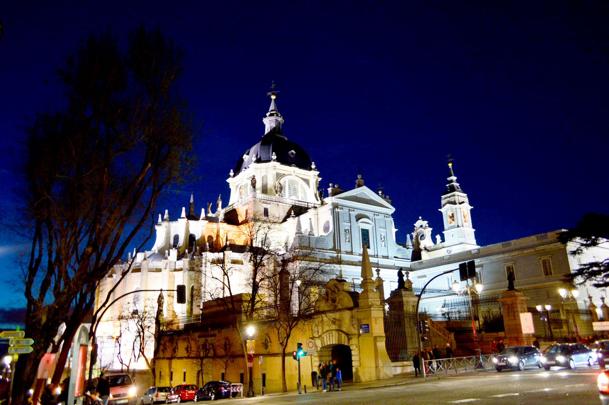 Находится храм неподалеку от резиденции монархов. Кафедральный собор Мадрида знаменит своей великолепной смотровой площадкой. Жемчужина церкви — небывалой красоты купол в стиле необарокко, высота которого составляет семьдесят пять метров. Так же прославлен алтарь собора, изготовленный из зеленого мрамора. Впечатляет и цветная мозаика храма. В солнечный день благодаря мозаике внутри собора пляшут разноцветные солнечные блики, полюбоваться на которые приходят туристы со всего света.