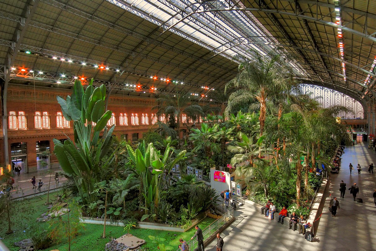 Одна из наиболее значимых примечательностей Мадрида – это вокзал Аточа. Крупнейшая и старейшая железнодорожная станция столицы Испании. Само здание поразительно изящное. Его украшают старинные часы. Сюрприз туристов поджидает внутри железнодорожной станции.