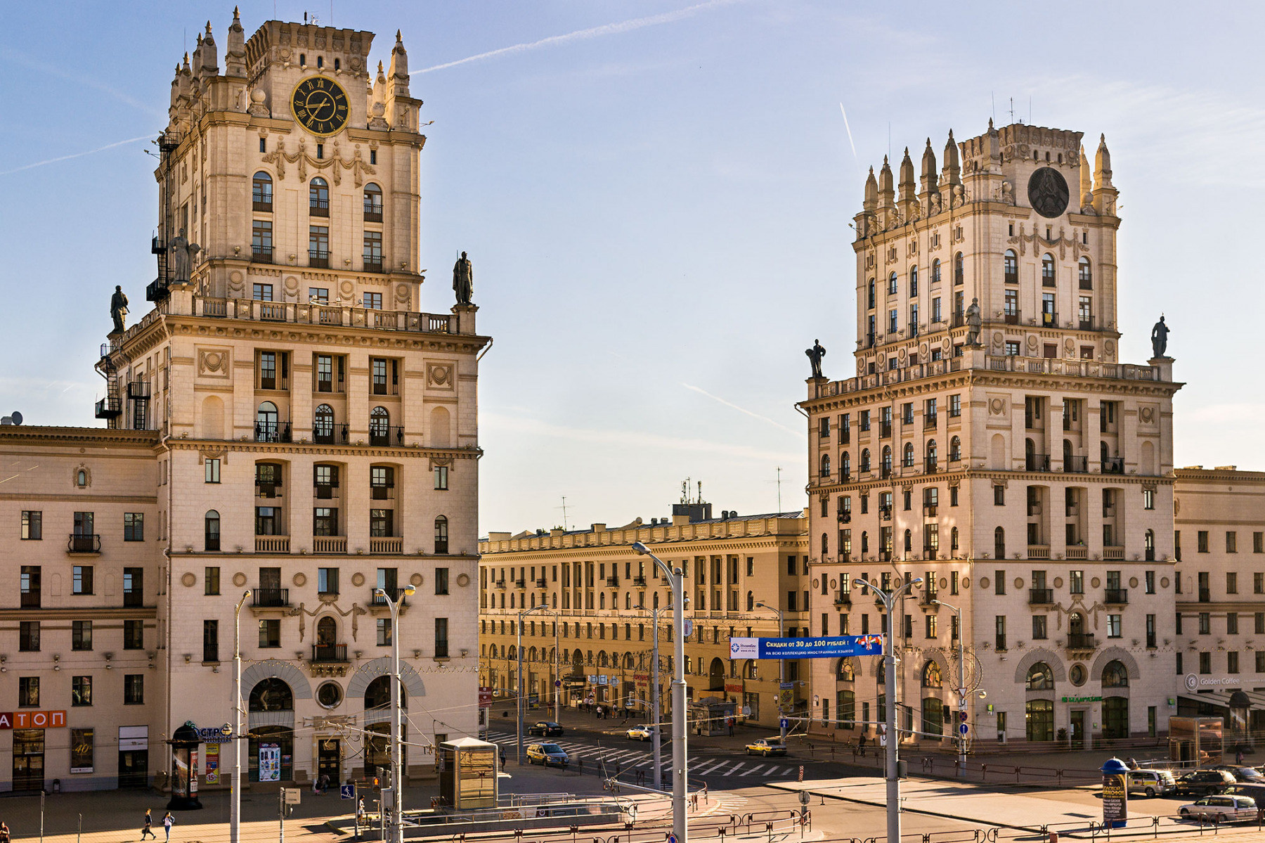 Одно здание украшают самые большие часы в Белоруссии, другое — герб республики. В рамках обзорной городской экскурсии можно провести осмотр достопримечательности.
