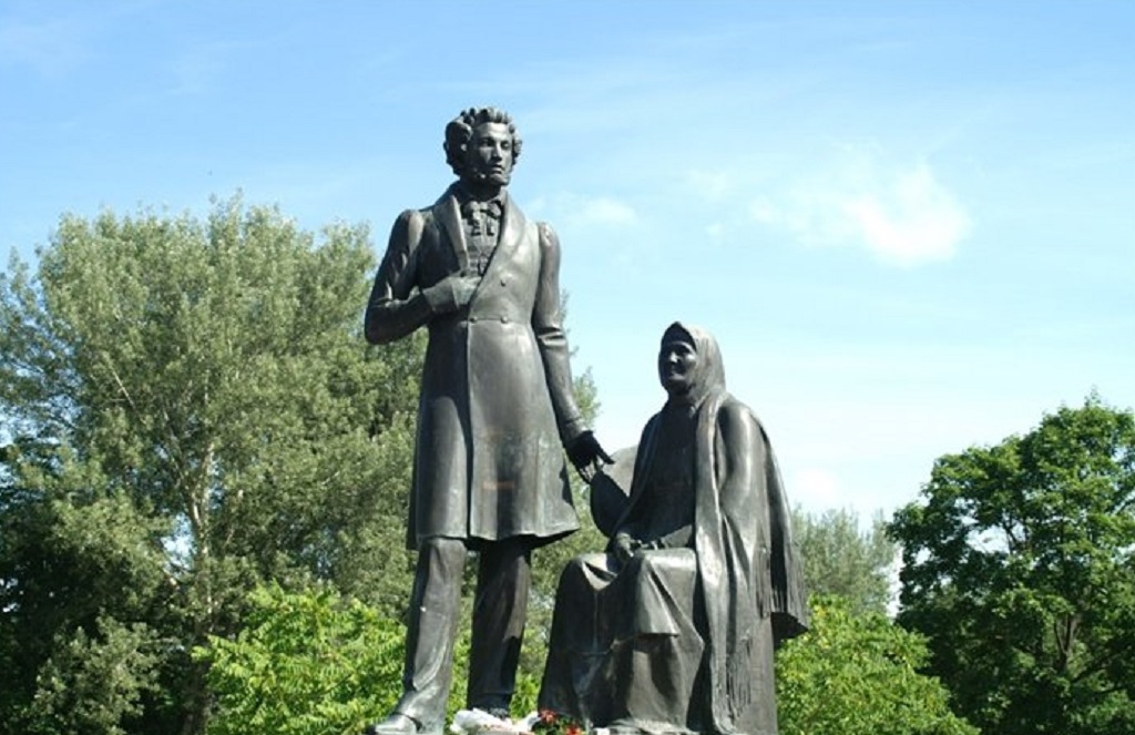 Одним из наиболее оригинальных памятников великому русскому поэту Александру Сергеевичу Пушкину находится в Пскове. Необычен он, прежде всего тем, что изображен поэт вместе со своей нянюшкой Ариной Родионовной. Скульптурное изображение расположено в прекрасном летнем парке.