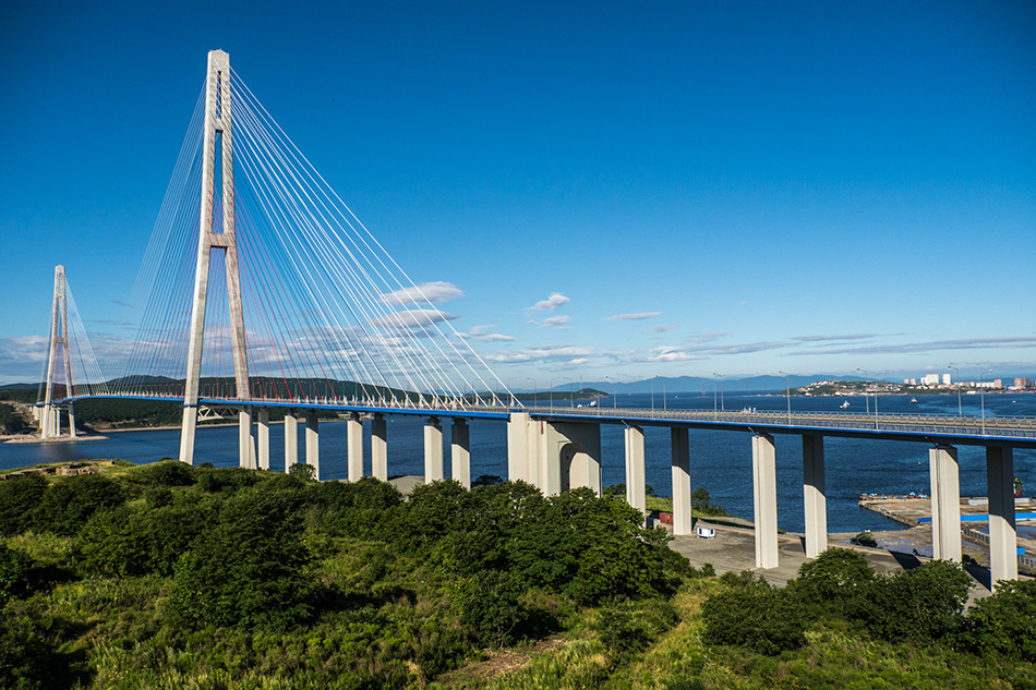 Множество фильмов снято с подобными винтовыми мостами, но на Западе. А теперь такая уникальная достопримечательность есть и у нас. Эти сложные конструкции выглядят поистине величественно. Еще с тридцатых годов прошлого столетия ходили разговоры о постройке моста, которому надлежит связывать город с островом Русский. И вот в 2012 году этот грандиозный проект осуществился.