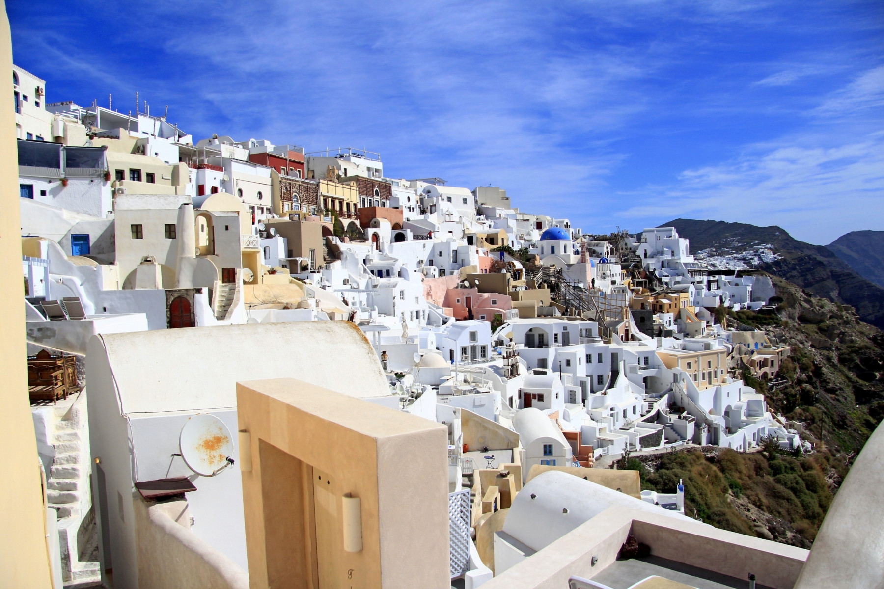 Остров Санторини это райское место, которое популярно у отдыхающих туристов со всего мира. Ласковое море, великолепная природа и мягкий климат сделали островок популярным туристическим курортом. Самой высокой точкой острова считается небольшой городок Ия, который буквально висит на краю неприступной скалы. Если подойти к городу со стороны суши, можно увидеть синие блики моря, которые отражаются от белоснежных стен.