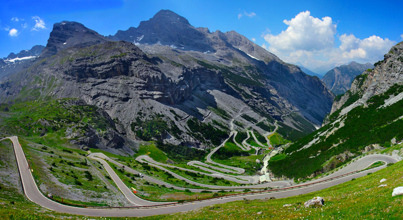 Перевал Стельвио – самый высокий асфальтированный перевал восточных Альп. Дороги здесь извилистые, с множеством крутых виражей, проходят то через долины, то по вершинам. Автомобилисты, путешествуя по ним, испытывают в одно и то же время страх и восторг. Мотоциклисты и профессиональные велосипедисты ценят эти дороги за обворожительные панорамы и захватывающие повороты.