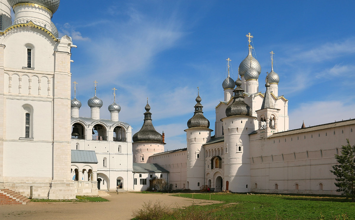 Стены из камня служили украшением Ростовскому Кремлю, который имеет одиннадцать башен несколько церквей. Одним из самых красивых храмов является Успенский. Это популярная достопримечательность прекрасно сохранилась, главным отличием от всех остальных церквей России, является наличие четырехглавой колокольни.